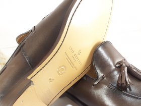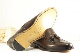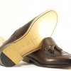 Zapato de vestir de luis Gonzalo en piel de color marrón, con adorno de borlas y suela de cuero.